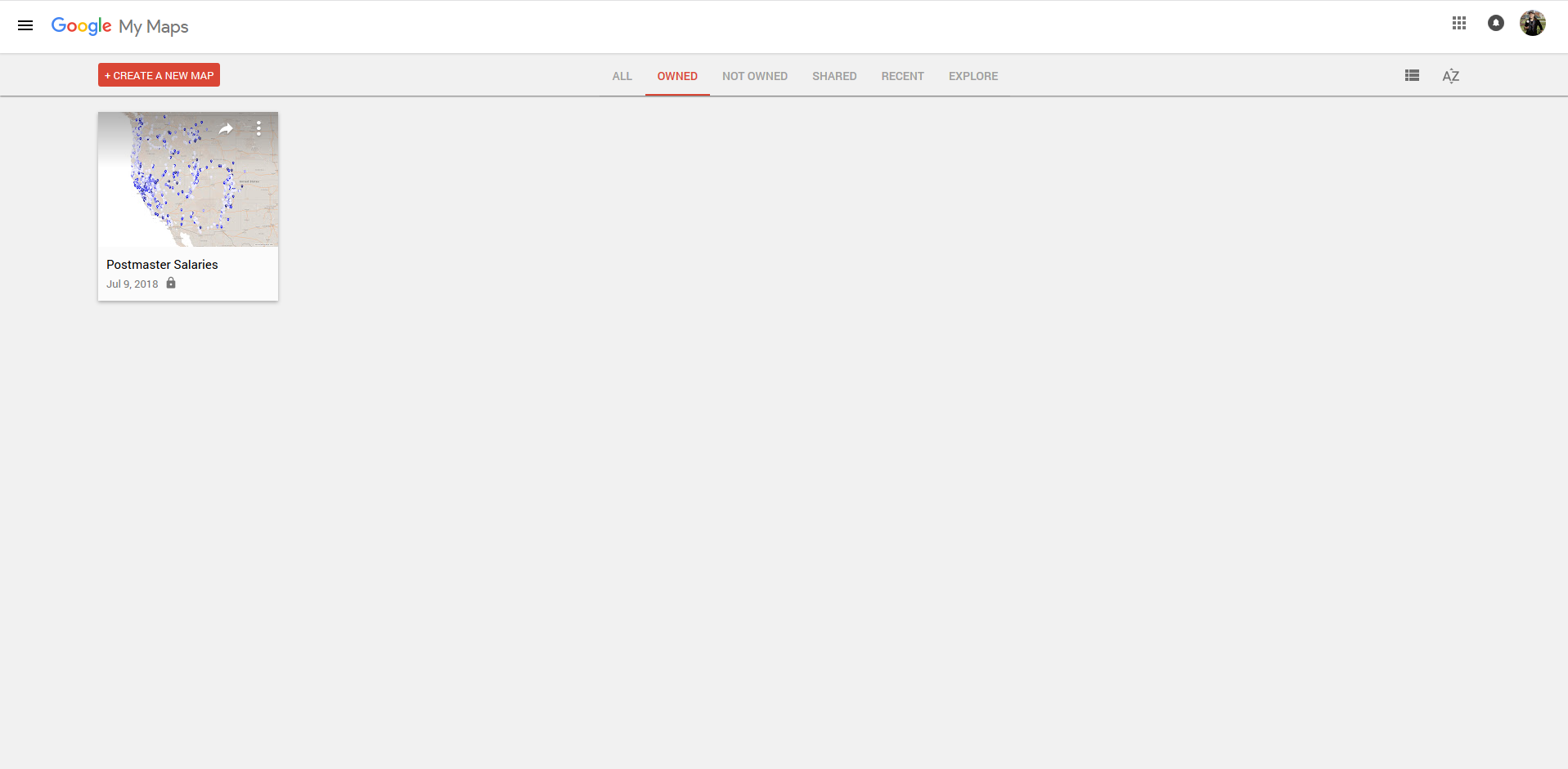 Now that we’ve mapped Blevins’s data using Google, let’s explore how he maps this data in the larger project. As you explore the maps, keep in mind Blevins was focused on mapping post offices’ hours of service, rather than postmaster salaries which were the focus of our data.