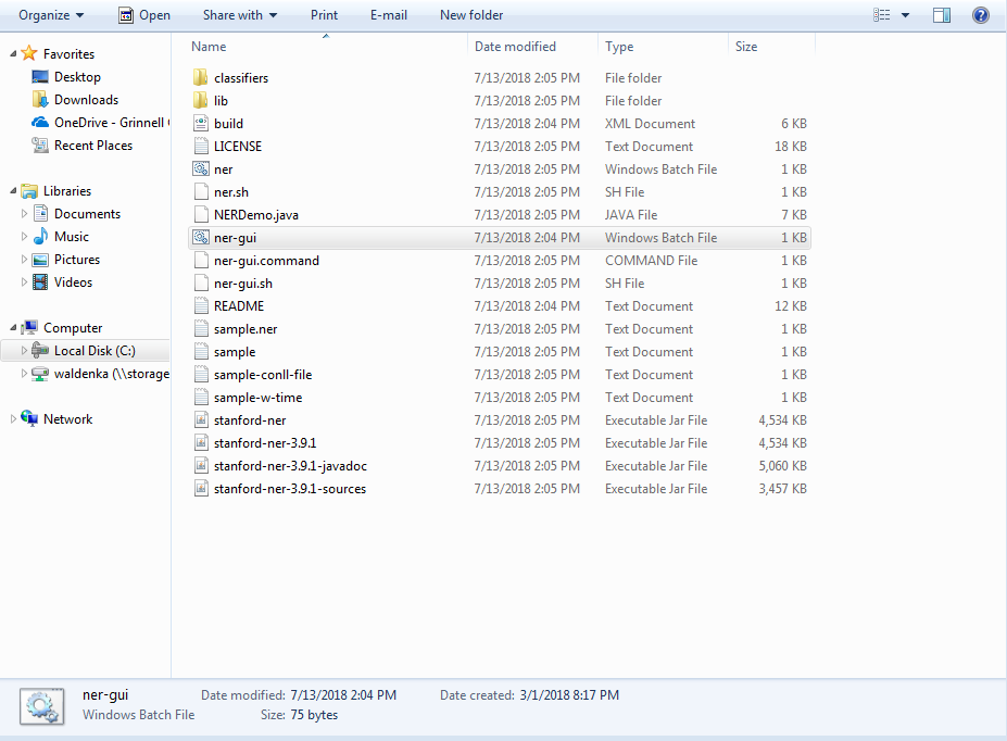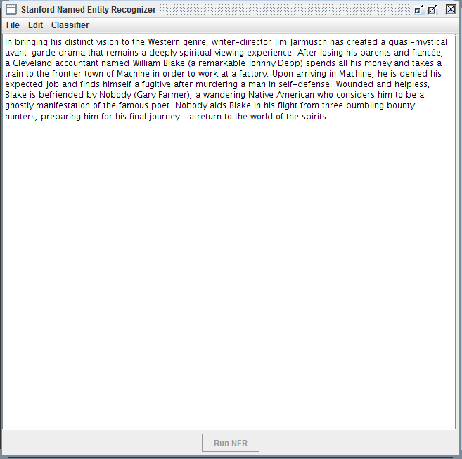 5-To open the program, navigate to C:\Program Files (x86)\Stanford NER and double click on the Windows Batch File named ner-gui.