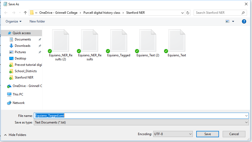 17-The GUI interface gives you options to export your tagged file. Click File->Save Tagged File As. Navigate to your Desktop and save the file as Equiano_Tagged.txt.