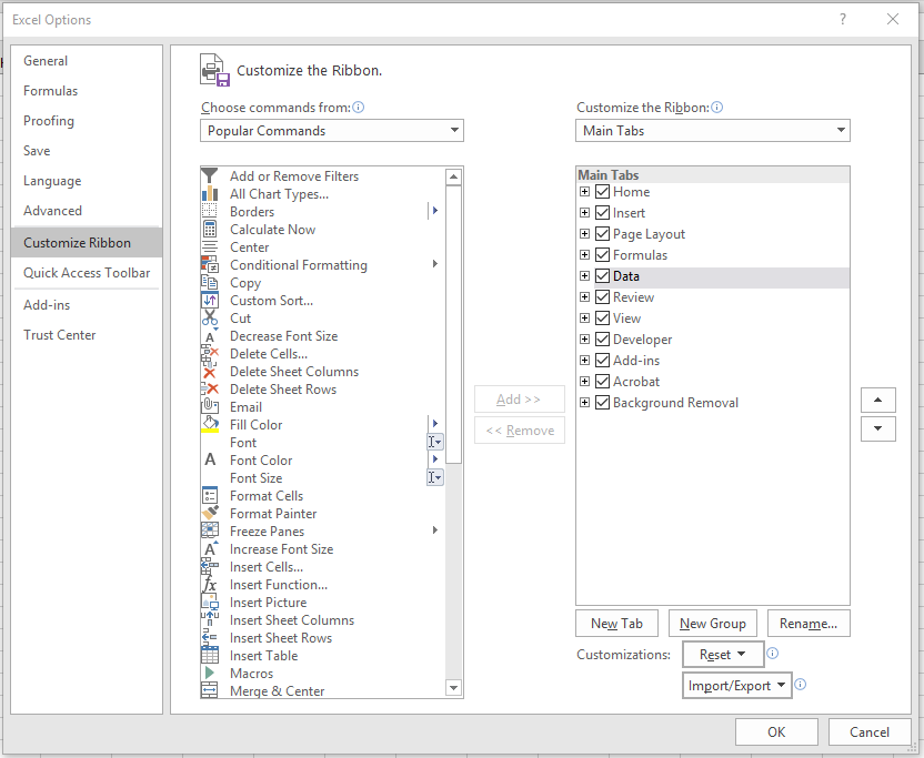 36-Under Customize Ribbon, check the box next to Developer to enable the Developer tools. Click OK.