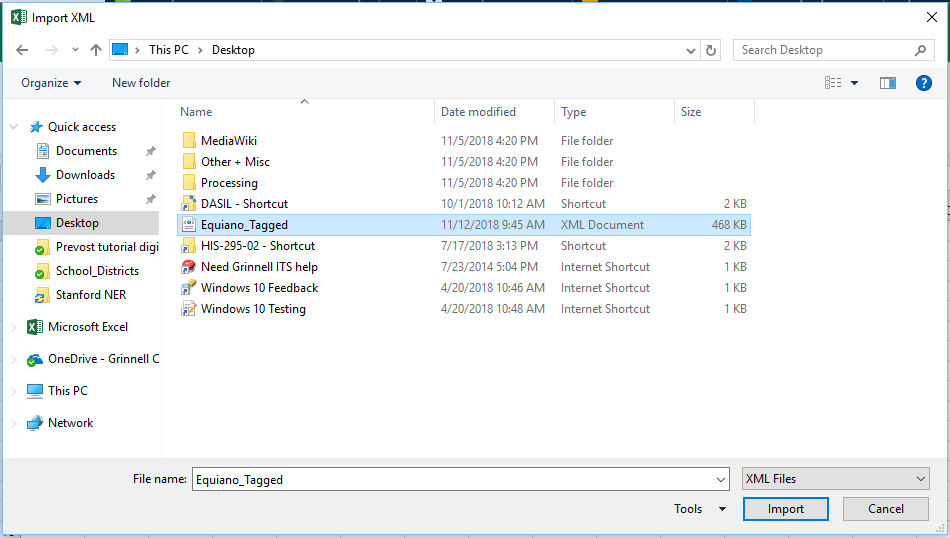 8-Click File->Open File, and select the Equiano.txt file saved to your Desktop.